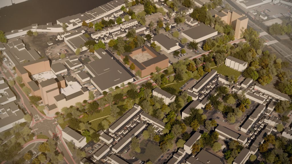- Een wandelpad door het groen aan de oostkant, met ruimte om te spelen, elkaar te ontmoeten en te verblijven